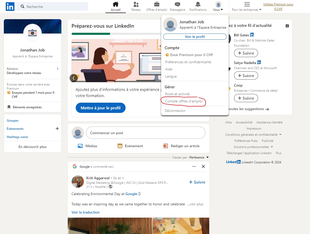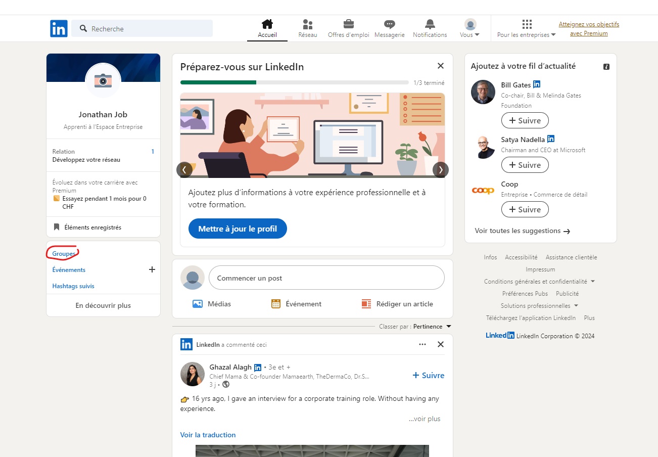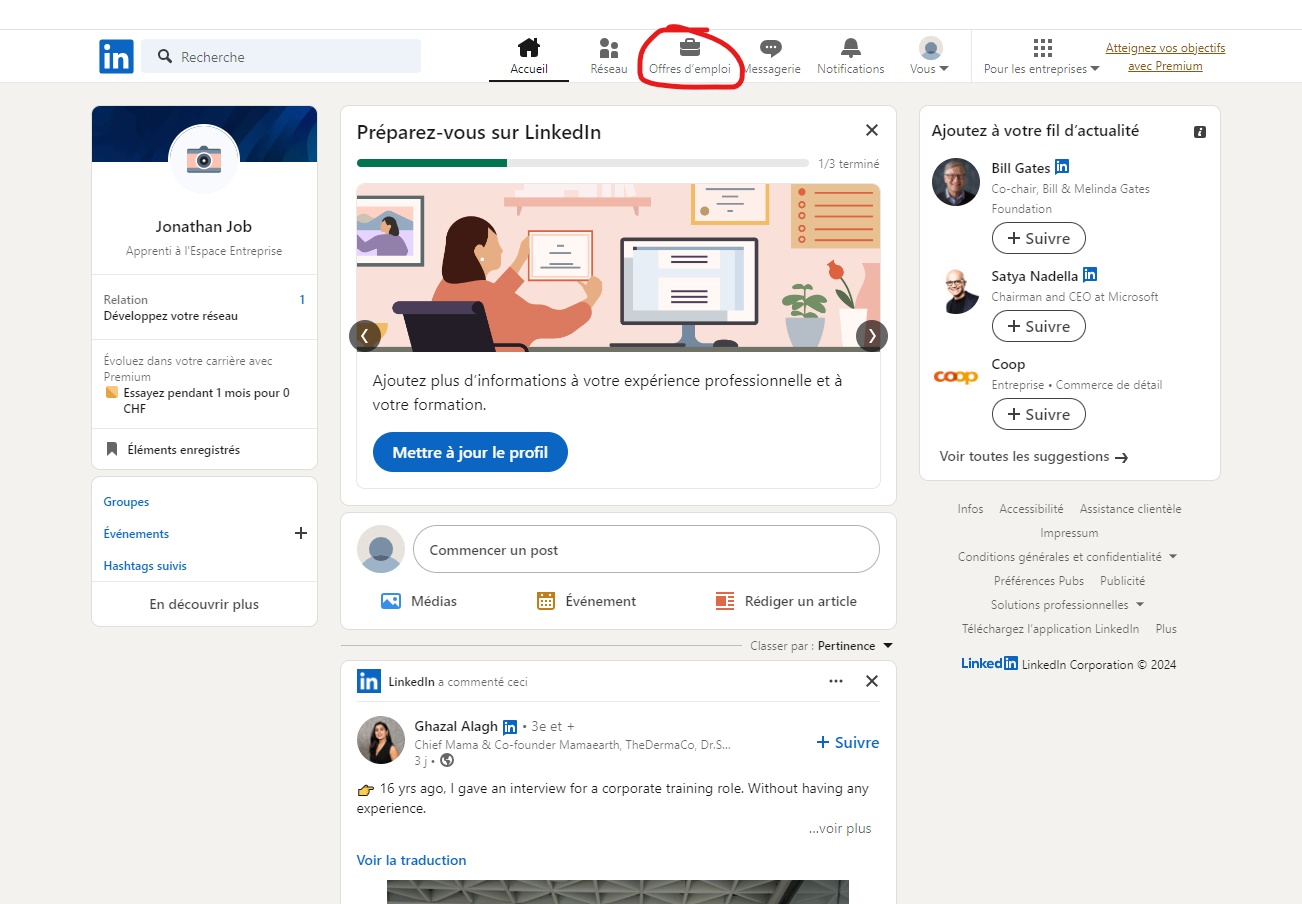 Pour accéder à la fonction rendez vous en haut dans la barre du menu des fonctionnalités LinkedIn.