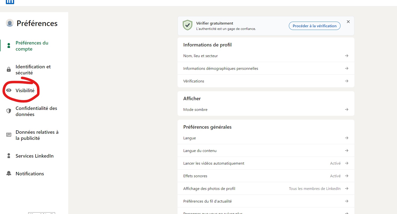 Votre profil peut être visible sur Google. Pour résoudre ce problème, allez sur la page d’accueil, cliquez sur vous, puis cliquez sur préférences et confidentialité. Sur cette page, allez sur « visibilité. »